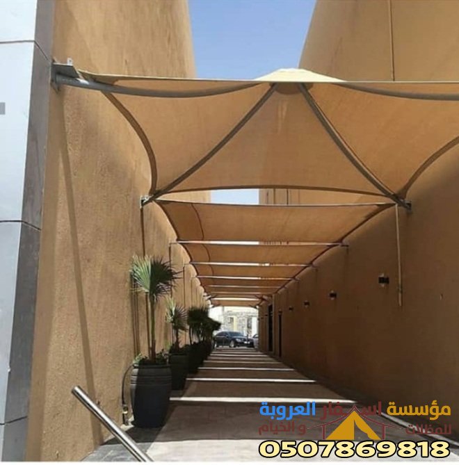 - مظلات الألومنيوم: خفيفة وسهلة الصيانة، وتوفر حماية كافية.