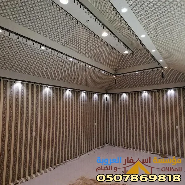 تفصيل الخيام والبيوت الشعر بيوت شعر من الداخل المدينة المنورة تعتبر بيوت الشعر من العناصر الأساسية في الثقافات العربية، وتستخدم على نطاق واسع في المملكة العربية السعودية لتقديم تجربة فريدة وجذابة. تسعى العديد من الأسر إلى إنشاء بيوت شعر خاصة بهم بتصاميم مميزة وفريدة تعكس روح الثقافة العربية.