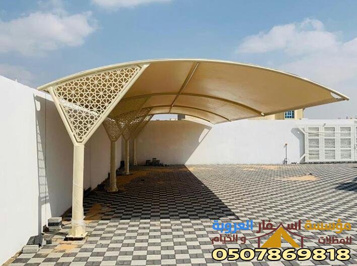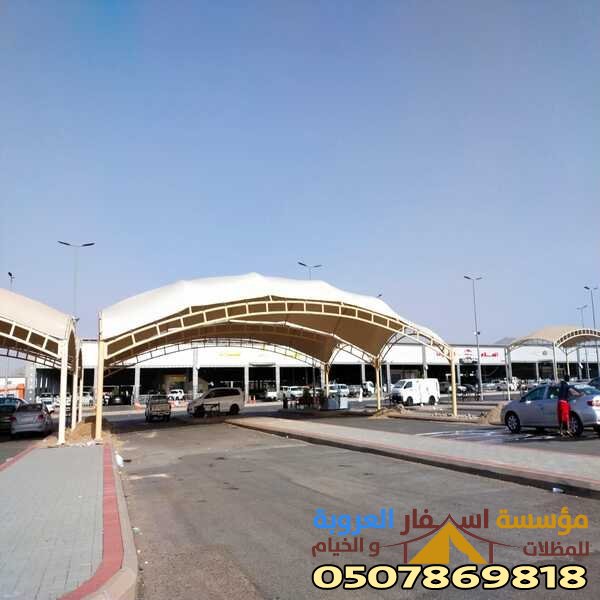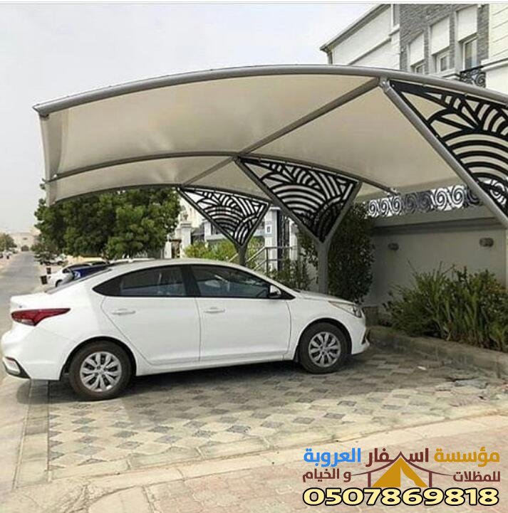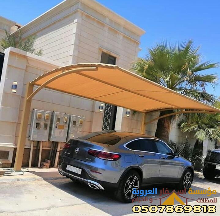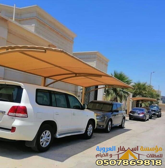 - مظلات فرنسية ثابتة: تثبت هذه المظلات من خلال قواعد خرسانية وتتناسب مع تغطية السيارات والجلسات الخارجية.