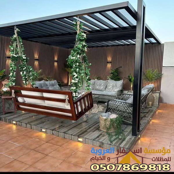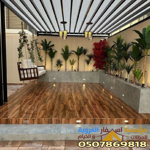 توفر مؤسسة الديار في ينبع المدينة المنورة مظلات جلسات حدائق أجمل أشكال جلسات حوش خشب وهي تساعد على توفير الحماية الكاملة من درجات الحرارة العالية التي تمنع وصولها داخل الحديثة وتتغلب على جميع الظروف المناخية، كما أنها توفر أجود أنواع الخامات وهي تضيف اللمسة الجمالية مع توفير الضمانات الشاملة لتحقيق الراحة لجميع العملاء.