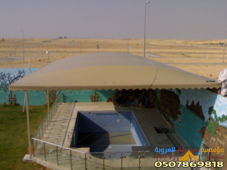 - يتم رفع المقاسات للمساحة المطلوب تغطيتها وتركيب مظلات ضد الماء فيها .
